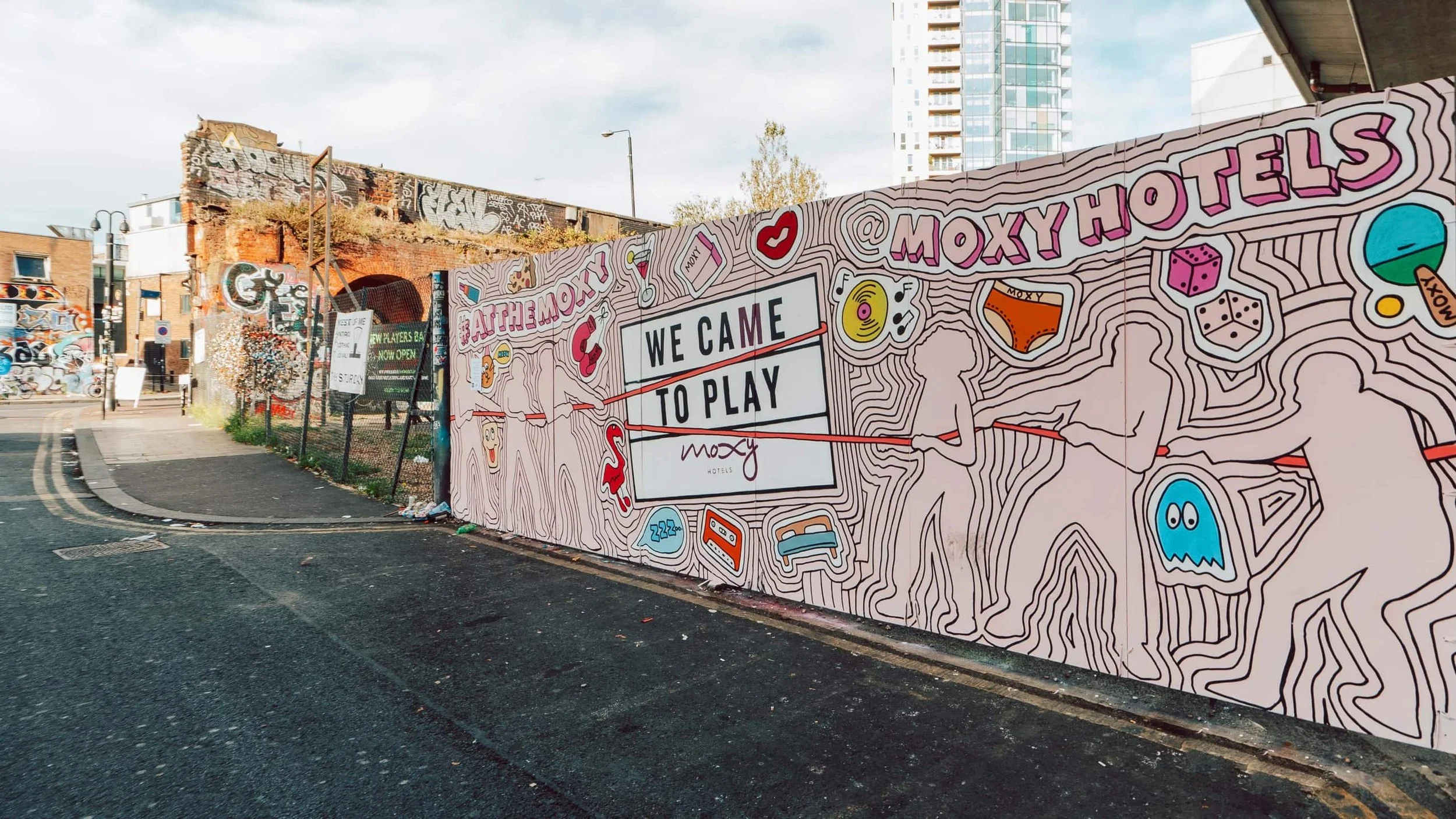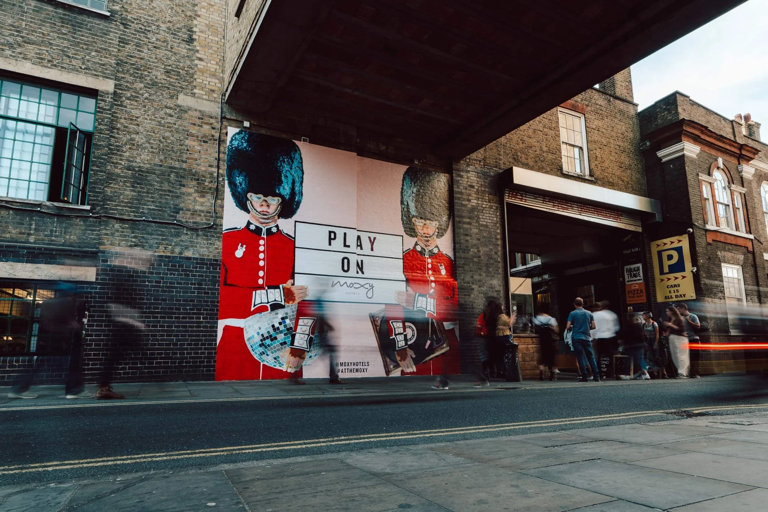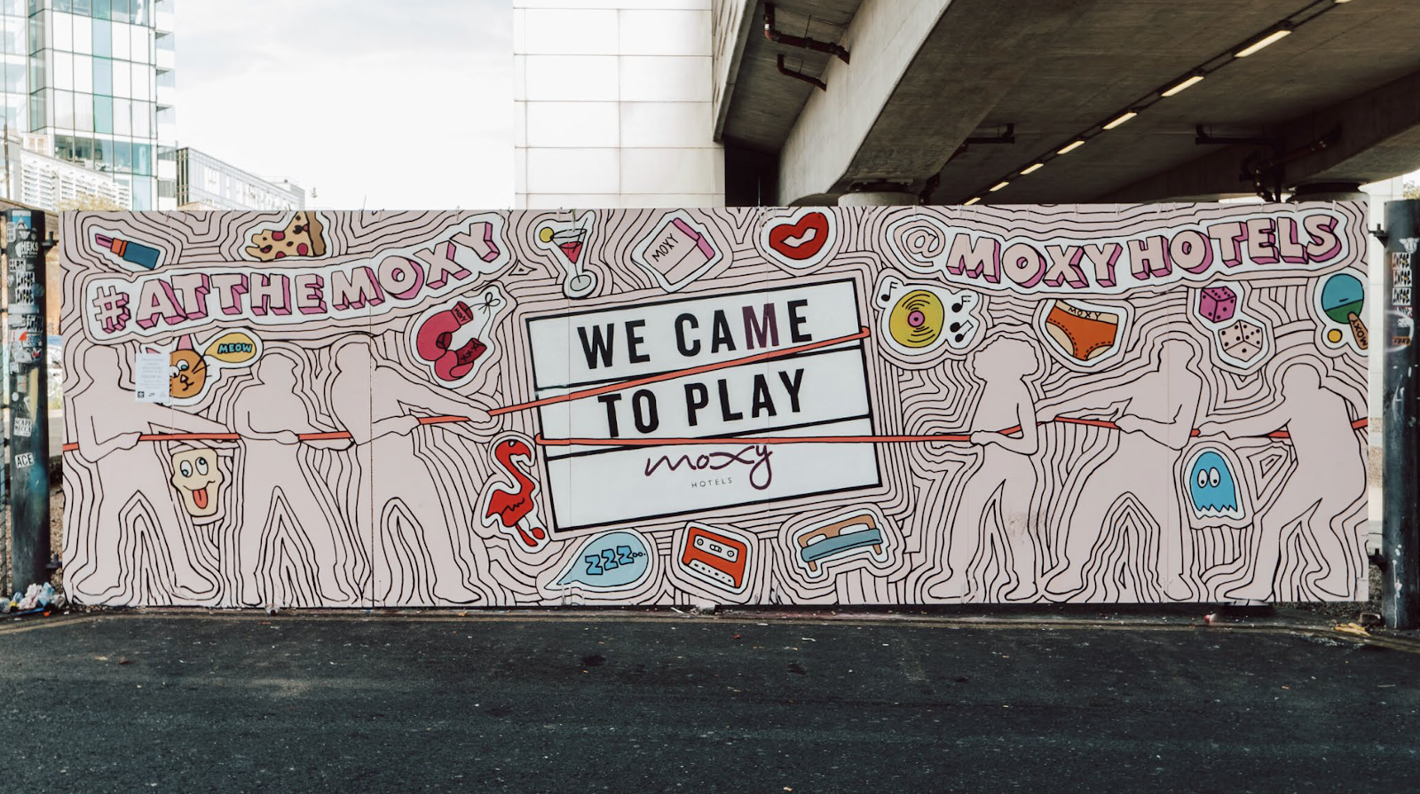 To tease the announcement of new Moxy Hotels opening across Europe, we painted two larger-than-life murals in the bustling and artsy hub of London’s east end, Shoreditch, that encouraged onlookers to play along.